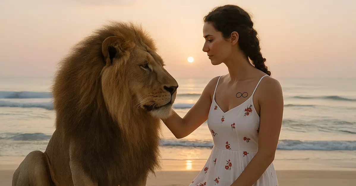 האריה מבטא תשוקות, פחדים ויצרים, והאישה – תודעה ושליטה עצמית. האיזון ביניהם מסמל עוצמה שקטה שאינה זקוקה לאיום או אלימות.